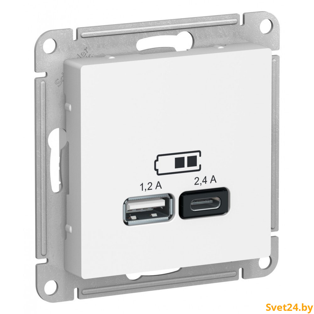 Розетка USB A+C 2-местная (2.4А и 1.2А) Systeme Electric (Schneider Electric) Atlas Design, лотос купить в Минске - Svet24.by