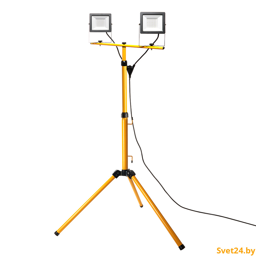 Прожектор светодиодный переносной на штативе, (ДО) FERON LL-504, 140W, 6400К (холодный белый), 230V/50Гц, 12600Lm, IP65, угол рассеивания 120°,*SMD2835, раб.t -40°C - +45°C, цвет черный-желтый, корпус алюминий литой под давлением + стекло, 670*525*1685мм (штатив+ голова) мм